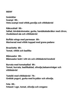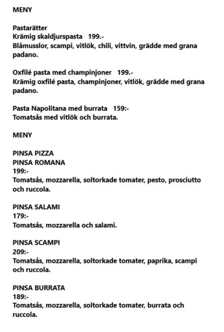 Maten som serveras i denna restaurang är okänd, prisklass per person är normalt: SEK 100 – SEK 250.