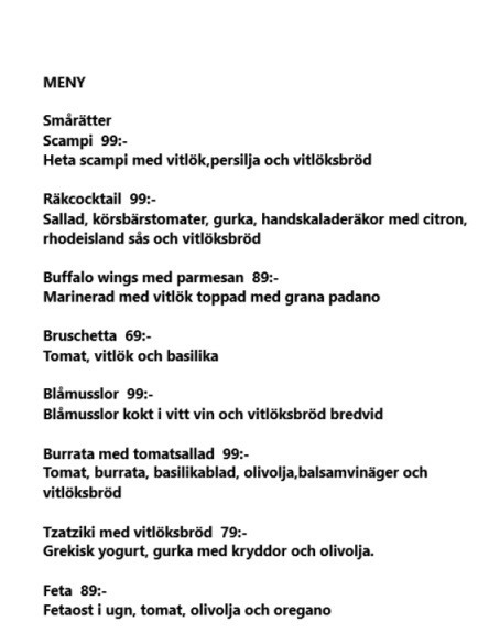 ”Älskade allt. Jag ätit i Mjölby och mysig atmosfär, mycket prisvärt. Annars väldigt trevligt ställe och bästa restaurangen. Beställde när kött som skulle varit medium, dock var den genomstekt i vissa delar. Mysigt och ryggbiffen var riktigt bra! Kan varmt rekommenderas. Kanongod mat i en väldigt härlig miljö! Maten hel fantastisk! Lätt värt ett besök! Tillgänglighet för rullstol: Ramp in o handikapptoalett och mysig restaurang.”