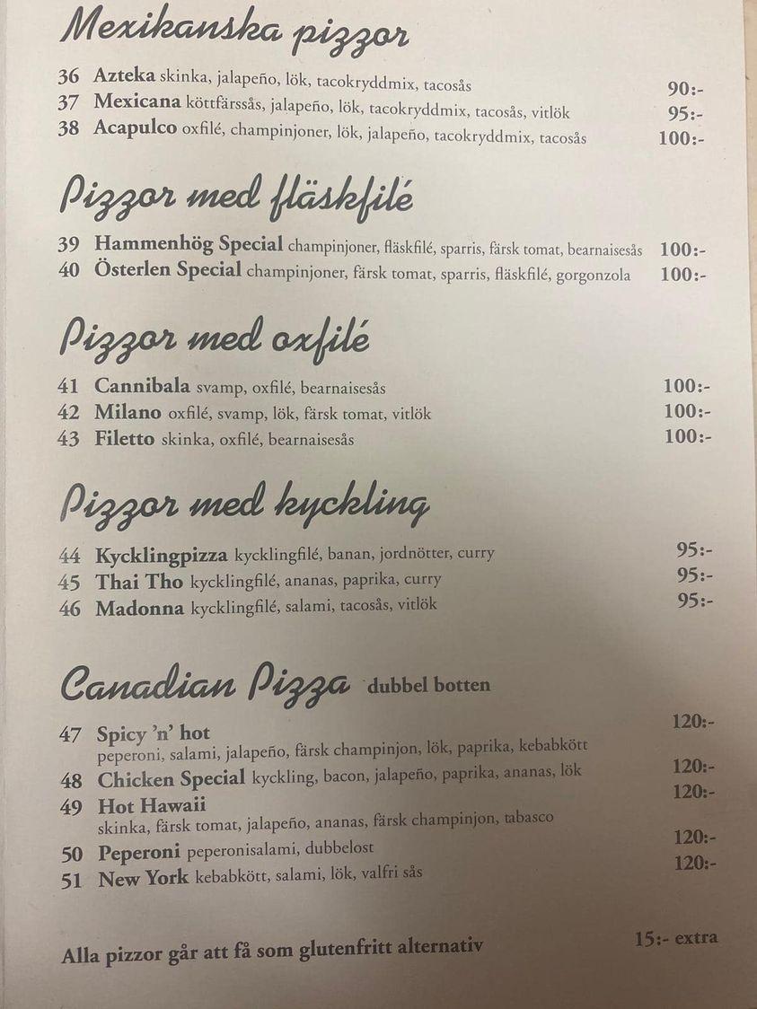 På Hammenhög Pizzeria kan du äta pizza och prisklass per person är normalt: okänd.
