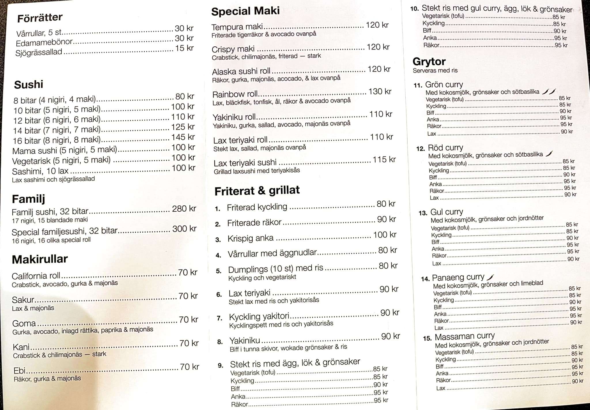 På My Sushi kan du äta sushi, vegetarisk mat och prisklass per person är normalt: upp till SEK 98.